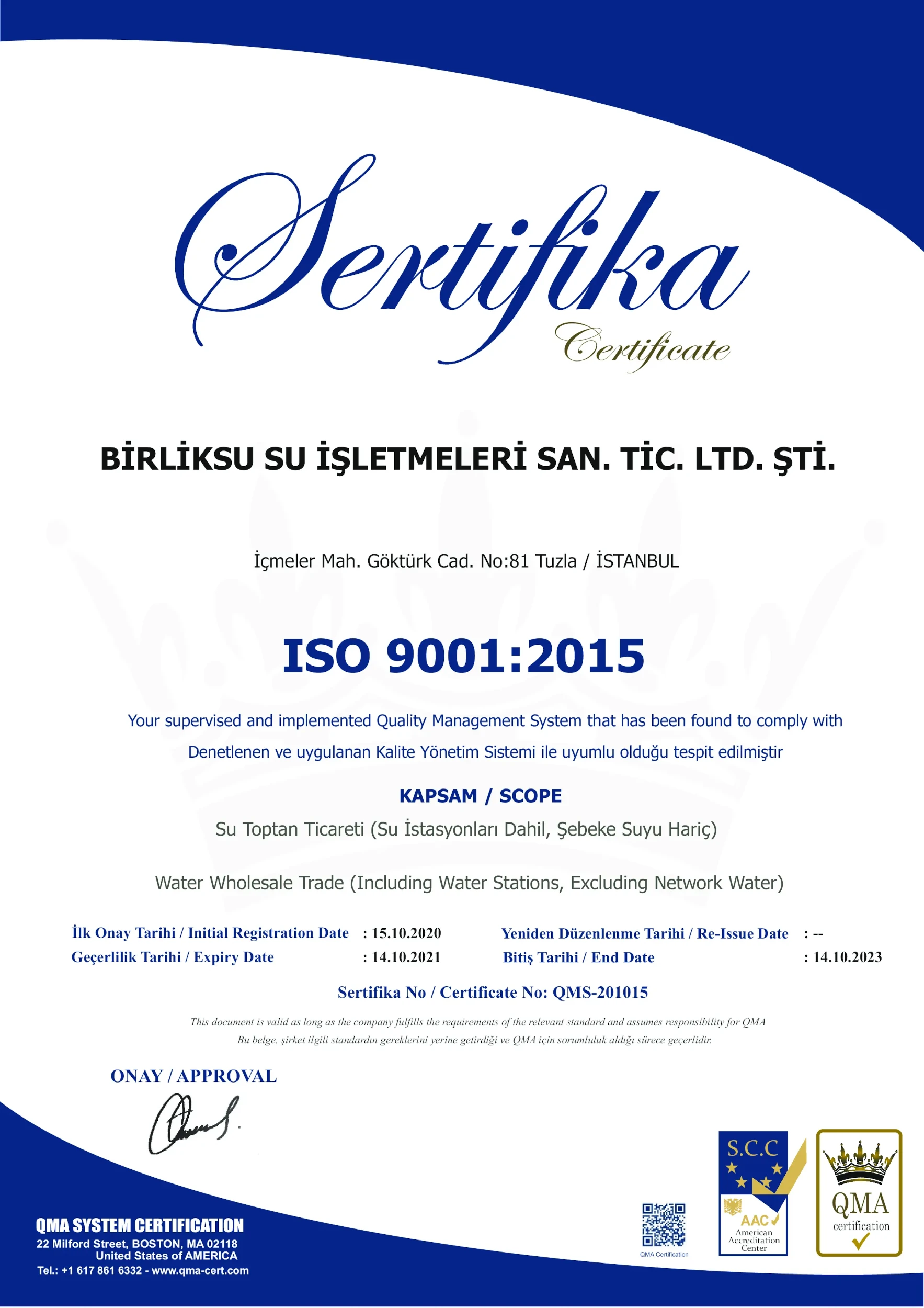 ISO 9001 - 10002 Sertifikası